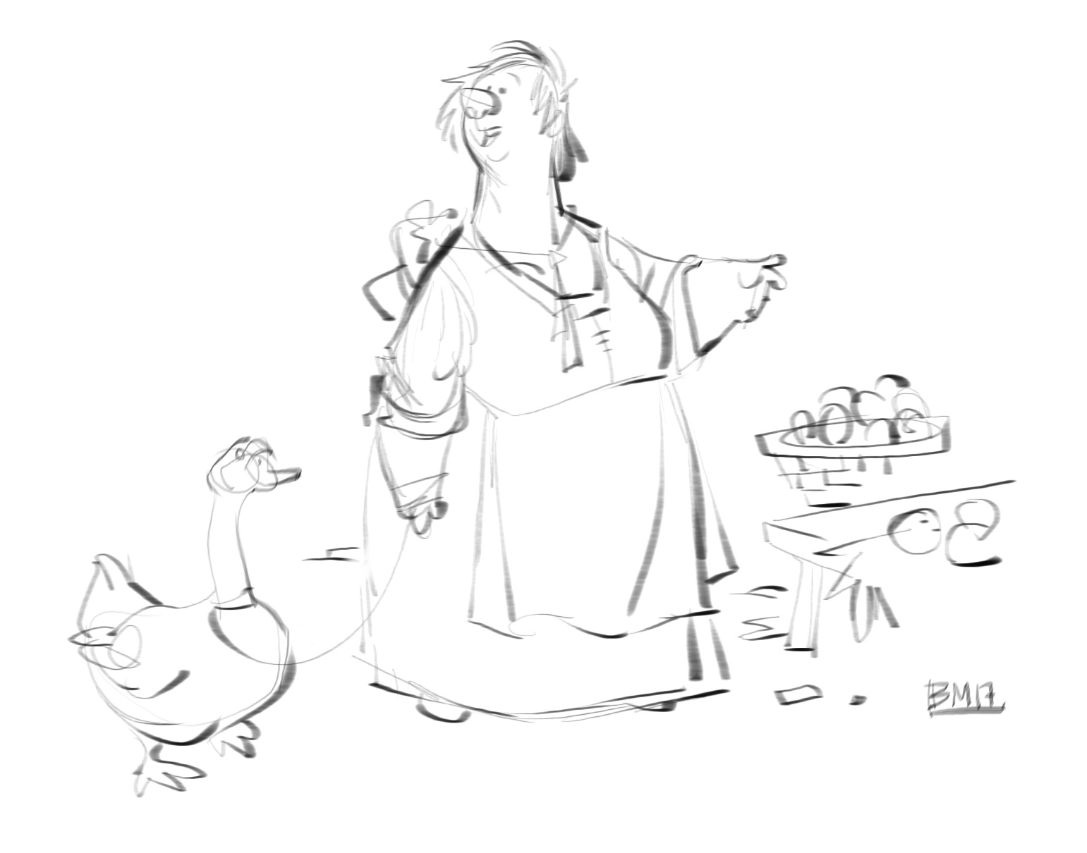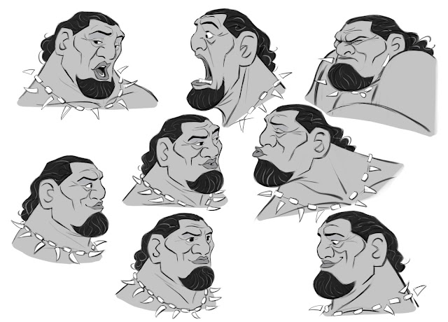 I worked on Moana as a Character Designer to help on what's called the Art Packeting. That means I was given the final approved design made at the Studio in Burbank and had to take care of it by working on the character to get it ready for modelling as well as helping the riggers and animators, giving both of them believable poses which would show the personality of the character you're dealing while keeping the same shapes, volumes and anatomy all along. Same as I did on Zootopia after Cory Loftis and Shiyoon Kim's designs, I had to do it this time following the amazing Artwork provided by Bill Schwab under the direct supervision of Bill himself and the great Jin Kim. I had a great time doing it. Jin had already amazingly made all the stuff on the two main characters, Moana, Maui and Granmma Tala with his unique draftmanship skills. I took care of Moana's parents, Tui and Sina, of Matai Wasa, who's the main ancestor who leads his people over the ocean, and also of the first early version of Hei Hei, when he wasn't yet the dumbest rooster on Earth but pretty much a grumpy kind of guy.